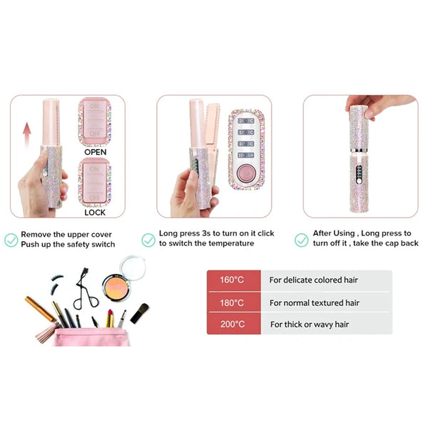 Die Glättebürste ermöglicht schnelles und einfaches Styling, sodass Sie wertvolle Zeit morgens sparen. Dank der USB-Aufladung ist sie überall einsatzbereit—perfekt für unterwegs oder bei der Arbeit.